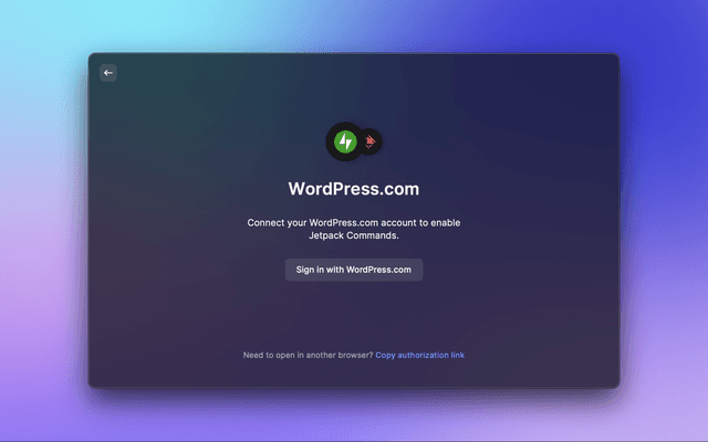 The Jetpack Commands Raycast Extension authenticates with the WordPress.com API to retrieve information about your sites. Each site must also have an active Jetpack connection.