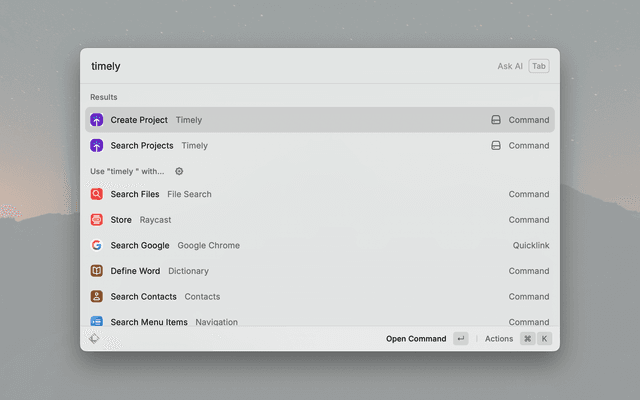 - Open in Browser – Jump to any project in Timely with one keystroke