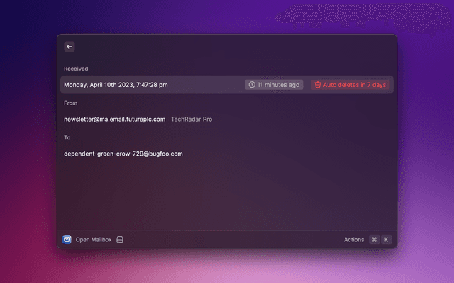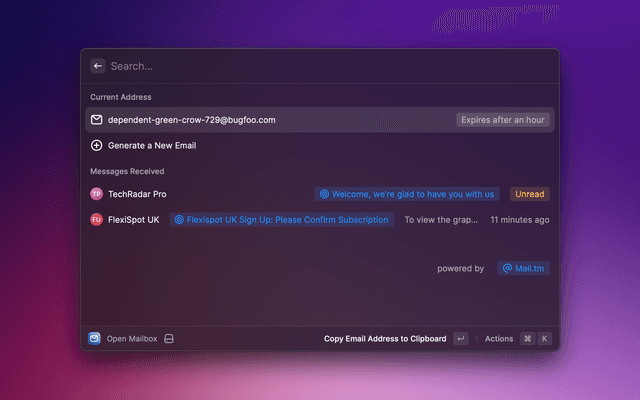 A simple built-in temporary mailbox for Raycast using the Mail.tm API.