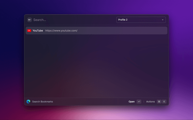 Open profile support is limited to opening tab in new profile window. You can customize default tab opening behaviour in Preferences.