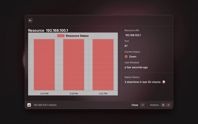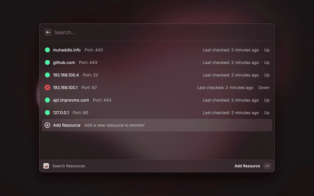 • Add Resource: Want to keep tabs on a resource? Hit 'Add Resource', punch in the URL and port number, and you're golden. This works for both local and remote resources. 🌍