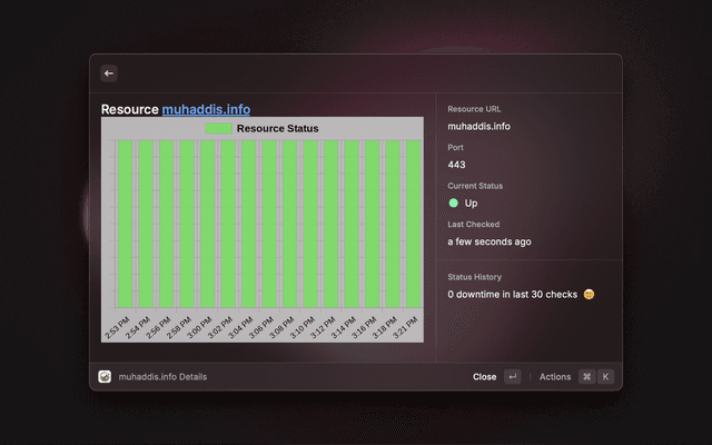 • Alerts: When a resource takes a nosedive, MonitorMate has your back. You'll hear an alert sound 🔊 (don't worry, you can mute it if you want peace and quiet). Your dashboard will instantly update with the latest status.