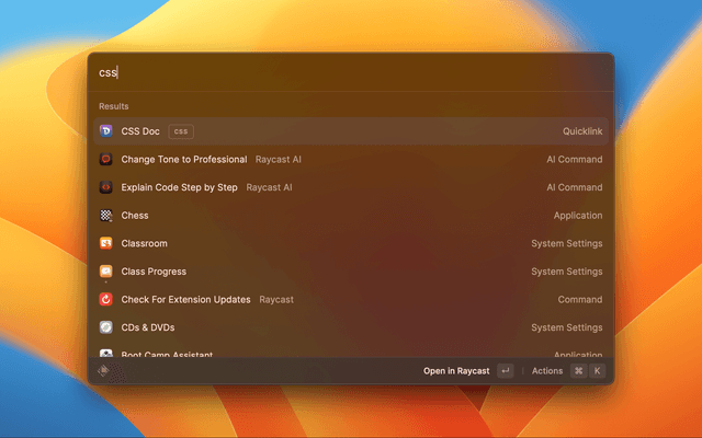• Then go to the Raycast Preference, in the Extension panel, find the link you just created in the Quicklinks group