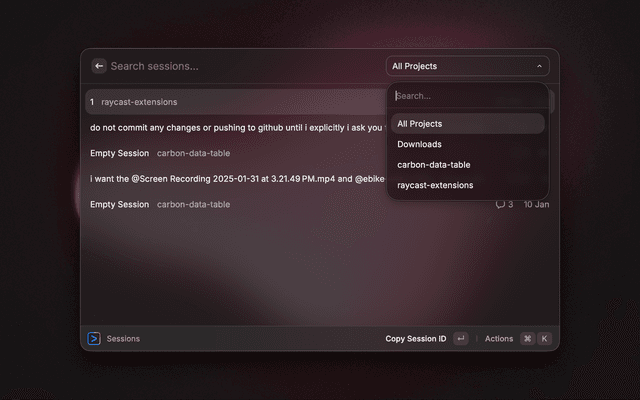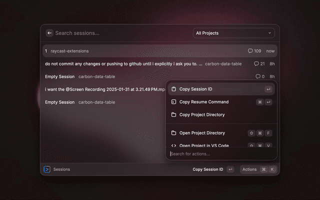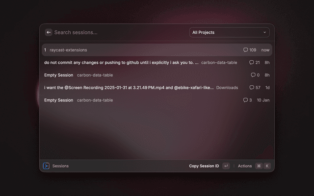 Gemini CLI lists all the gemini cli sessions, stats and more