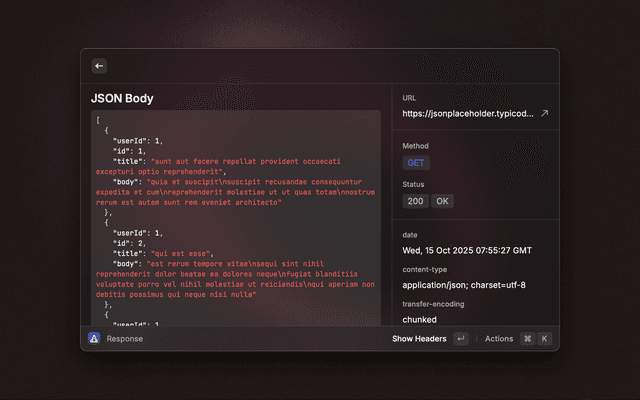 A powerful HTTP client built for Raycast. Test APIs, manage environments, and chain requests - all without leaving your keyboard. Raycast Store License: MIT