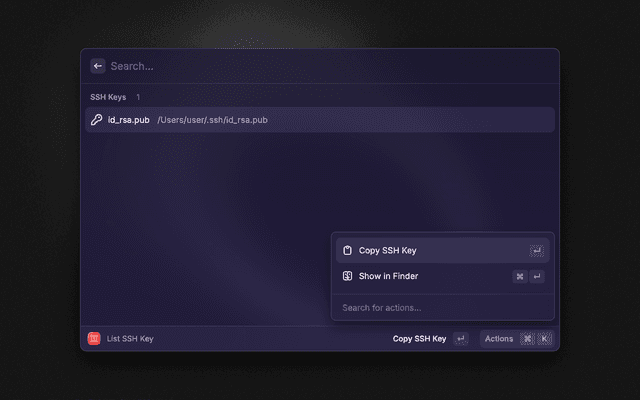 Get SSH key extension for Raycast.