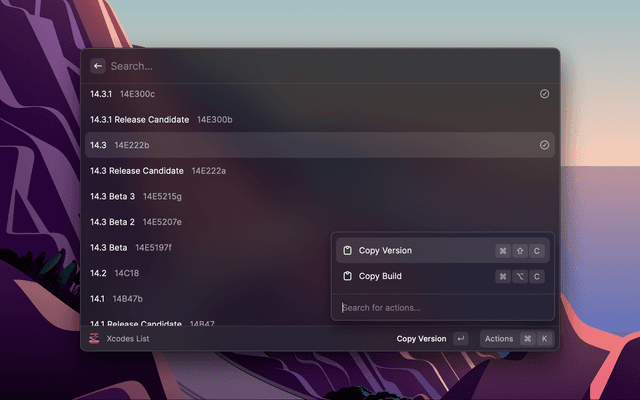 Search and open your recent Xcode Projects, manage your Simulators & Apps, view the latest Releases, create Swift Packages & Playgrounds and quickly clear Xcode cache files.