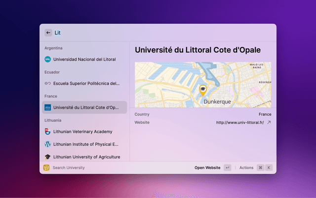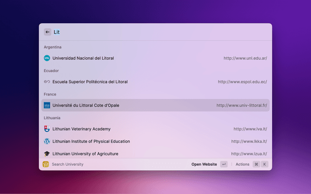 Search for universities worldwide by name.