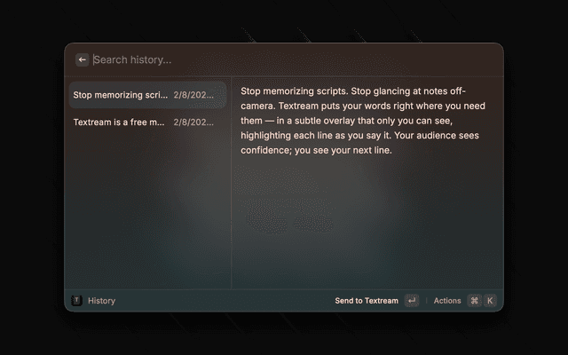 Raycast extension for Textream — a free macOS teleprompter app for streamers and presenters.