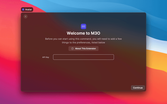 In order to use this extension, you'll need to enter the API key from the M3O dashboard.