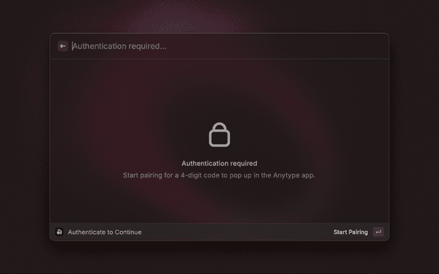 - Enter the Code: A popup in Anytype Desktop will display a 4-digit code. Input this code in the extension's