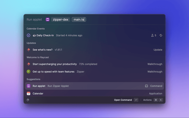 This extension allows Raycast users to execute applets from Zipper.dev directly through Raycast.