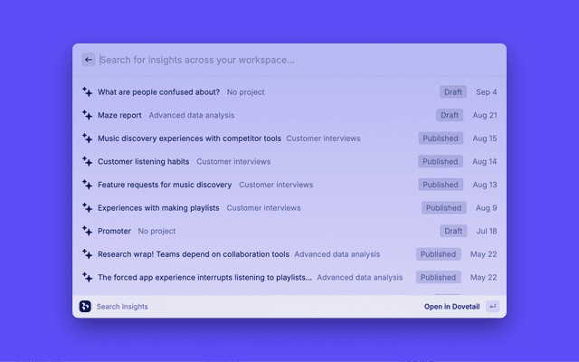 Search for data and insights across your Dovetail workspace.