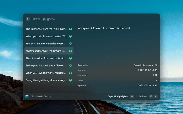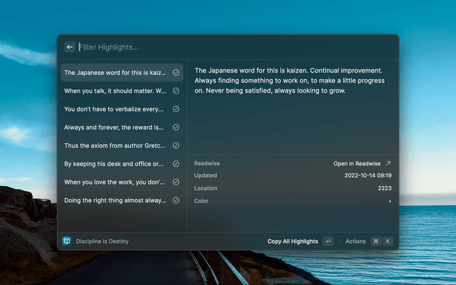 This extensions displays your Readwise highlights and gives you an easy way of copying the highlights to Tana.