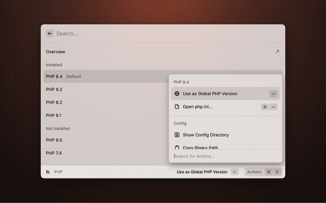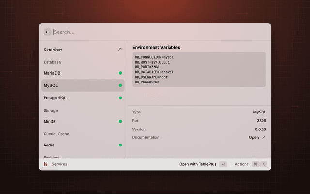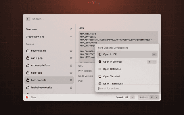 Provides quick access to Laravel Herd features and settings.