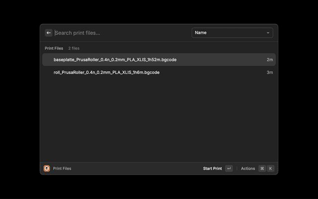 Control your Prusa printer directly from Raycast. Monitor print status, manage files, and control prints without leaving your keyboard.