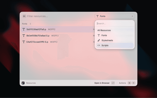• Font detection (Google Fonts, Adobe Fonts, Bunny Fonts, Fontshare, Fonts.com, Font Awesome, custom)