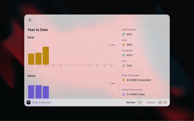 Monitor your Tesla solar panels and Powerwalls from Raycast.