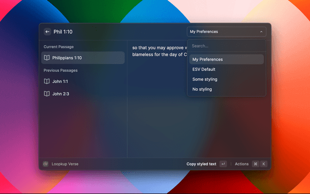 Once you’ve added your ESV API key, you can configure the ESV extension with the following settings: