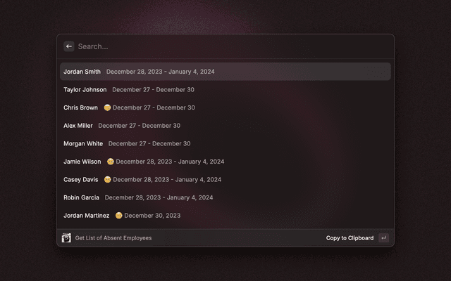 This extension integrates with Sage HR to provide a searchable list of employees who are out of the office today. It's designed to help managers and team members quickly find out who's absent, aiding in better resource planning and communication within the workplace.
