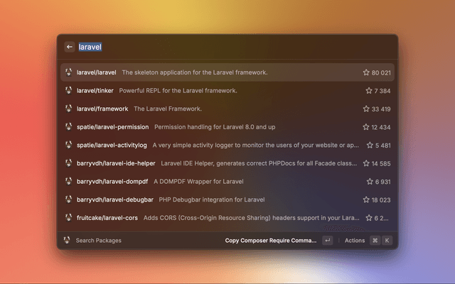 Easy access to Composer Packagist from raycast