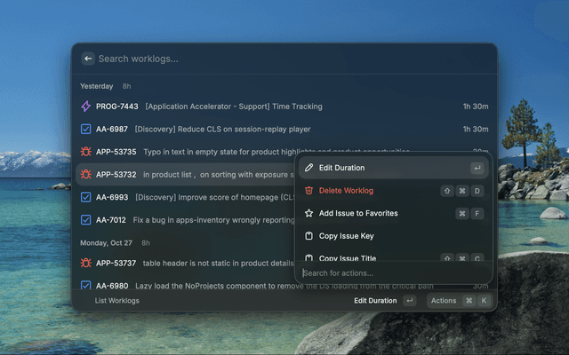 3. Use actions to edit duration, delete, or add issues to favorites