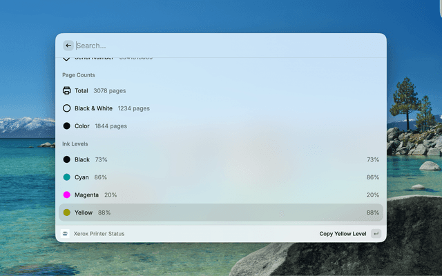 This Raycast extension allows you to quickly check key information about your Xerox WorkCentre 6515 printer directly from Raycast.
