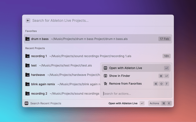 Search and open Ableton Live projects