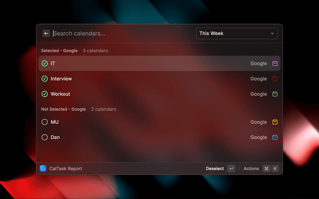 - Toggle which calendars are visible across all CalTask commands