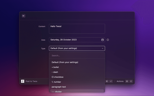 Post to Twos from Raycast