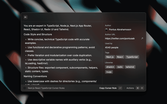 - Starring System: Save up to 10 favorite cursor rules for quick access.