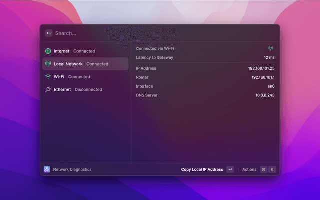 View diagnostic information about your network to help figure out why it's playing up.