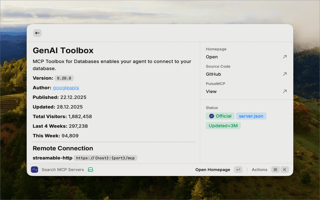 PulseMCP collects and enriches MCP-related data from around the web, providing a comprehensive registry of Model Context Protocol servers. This extension uses their public API to search and display server information.