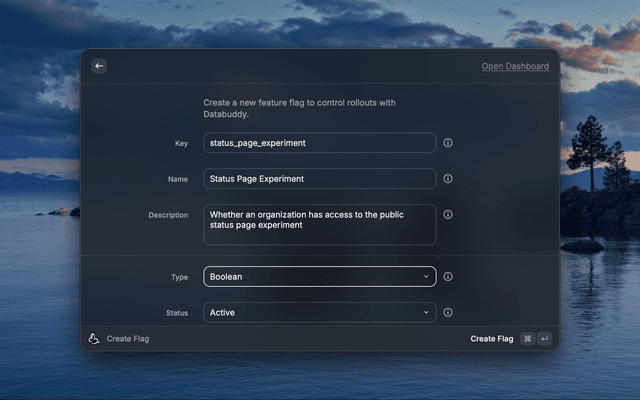 - Create Flag — Create a new feature flag with type, rollout percentage, and environment targeting