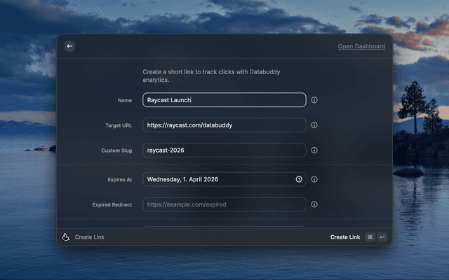 Databuddy is a privacy-first web analytics platform — view your websites, links, feature flags, and funnels from Raycast.