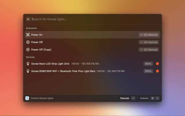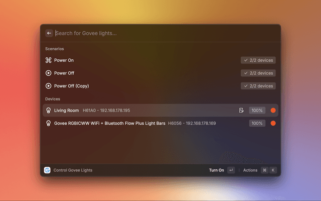 Control your Govee Lights using Raycast.
