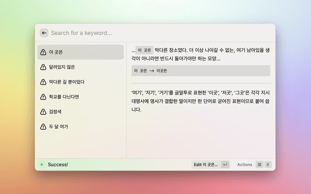 This is a raycast extension with a command to check spelling/grammar errors in your Korean text.