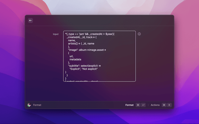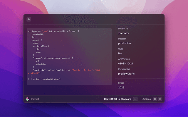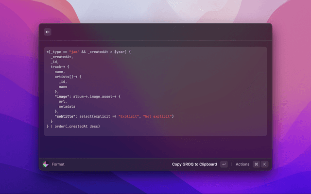 Format a GROQ query.