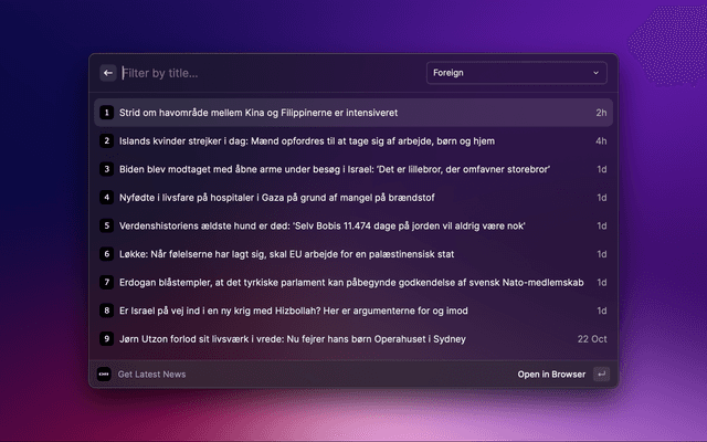 Showcases news updates from DR, Denmark's premier broadcaster, categorized by various topics.