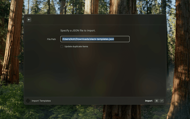 2. Templates will be exported to ~/Downloads/slack-templates.json