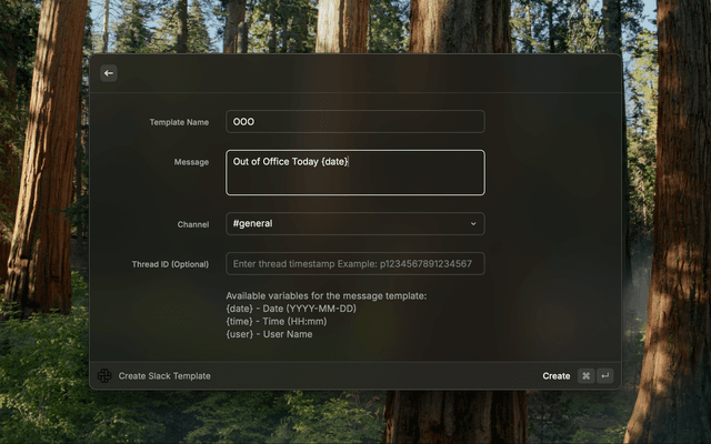 1. Open Raycast and run Create Slack Template