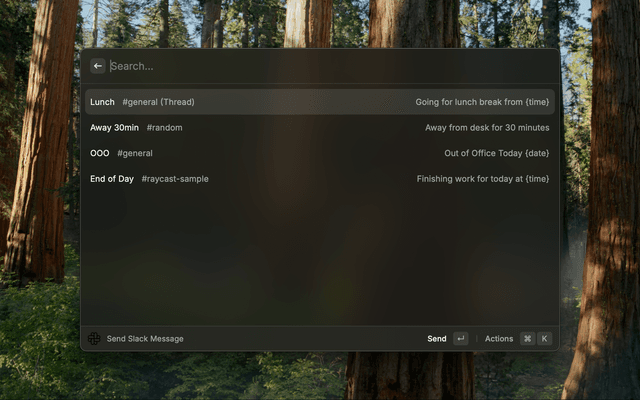 1. Open Raycast and run Send Slack Message