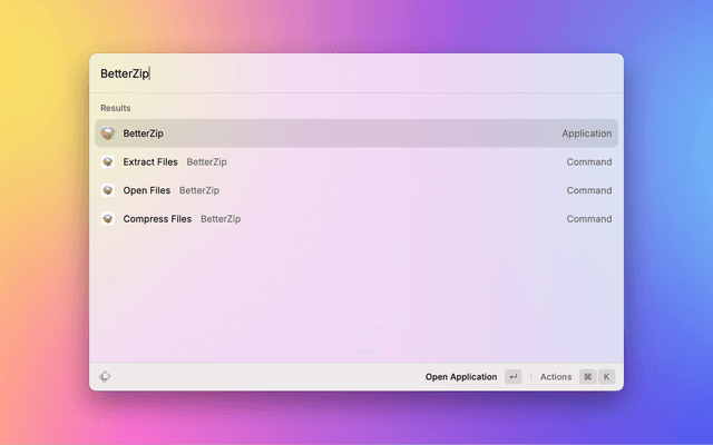 Compress and extract selected items in Finder with BetterZip via Raycast.