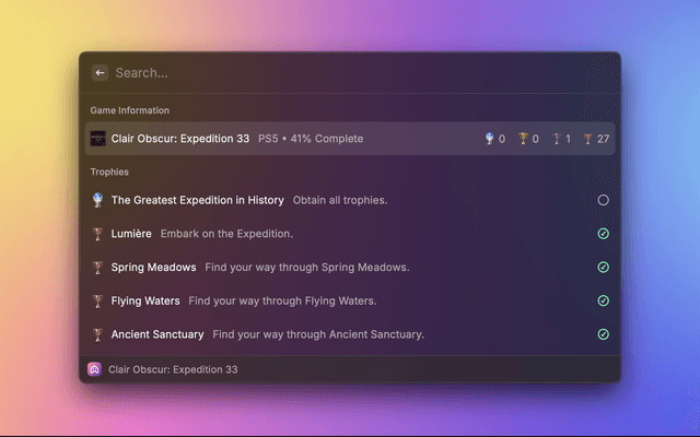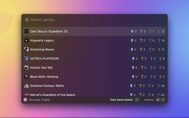 🏆 Trophy Tracking: Browse and search through your earned trophies