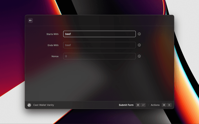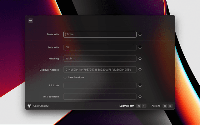 <Action.OpenInBrowser title="View Docs" url="https://book.getfoundry.sh/reference/cast/cast-keccak" />
