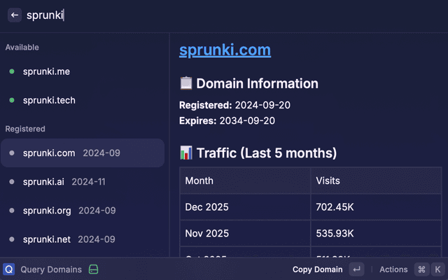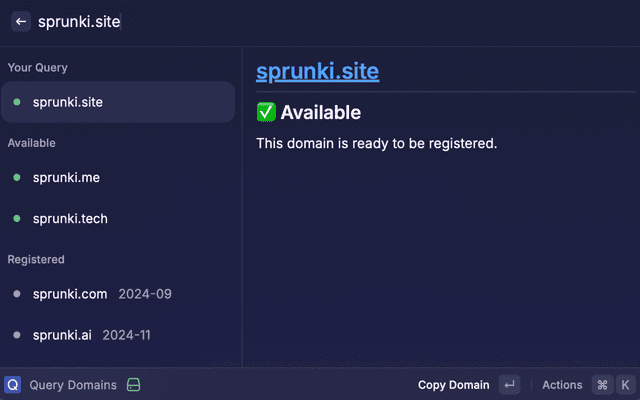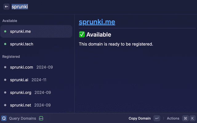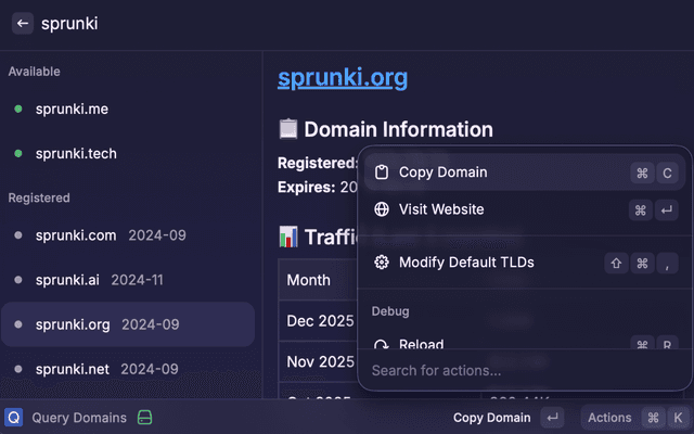 • Quick Actions: Copy domains, visit websites, and manage settings with keyboard shortcuts