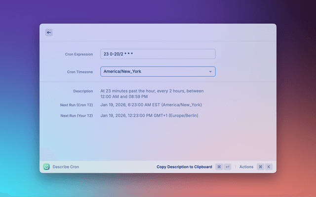Converts cron expressions into a human readable description.