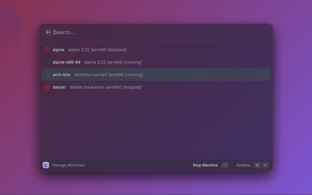 Manage OrbStack machines and containers directly from Raycast