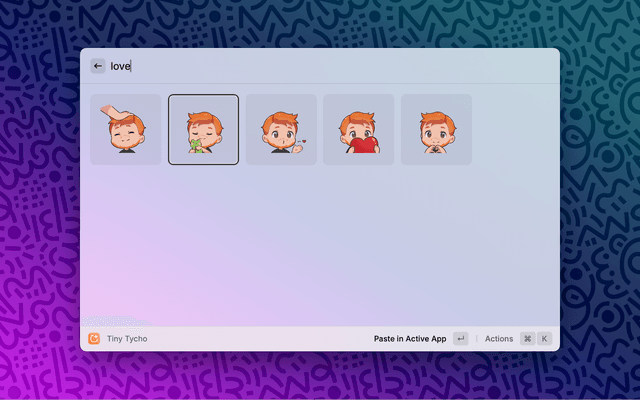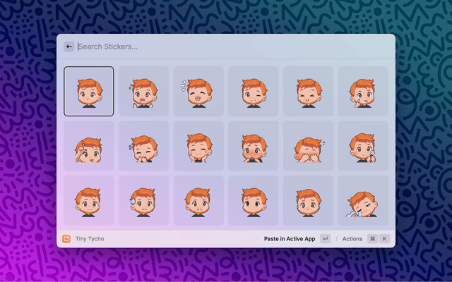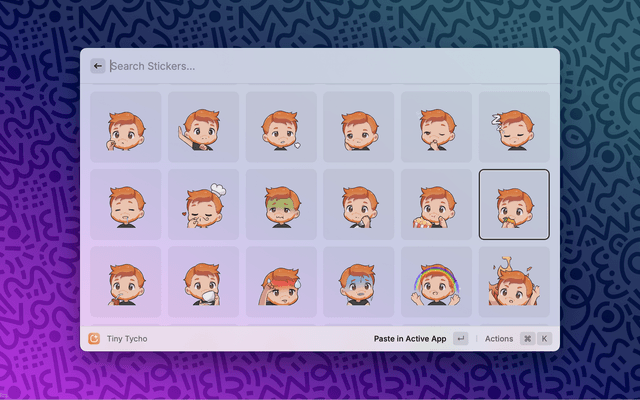 This extension allows for easy access to the Tiny Tycho stickers. Tiny Tycho is a sticker pack featuring over 100 stickers of Tiny Tycho, an adorable version of Tycho.