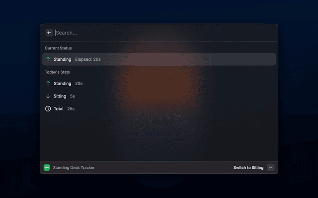- Start Tracking: Open the "Standing Desk Tracker" command and select your current position (Standing or Sitting)